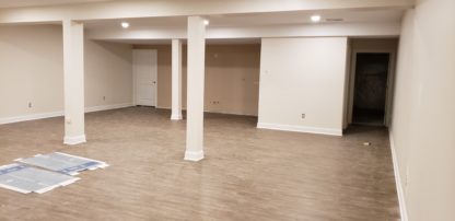GIANT FINISHED BASEMENT with half bath, 9 foot ceilings and private entrance dimmable LED lighting